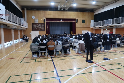 校長先生や教務、生活指導、進路指導それぞれの主任の先生から詳しい説明がありました。