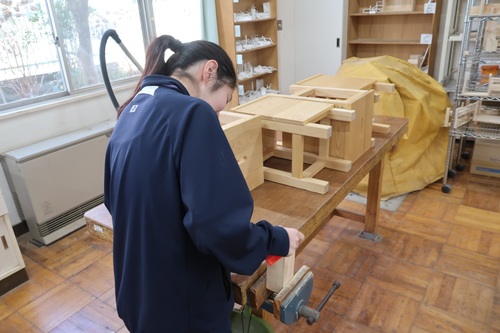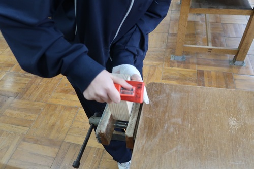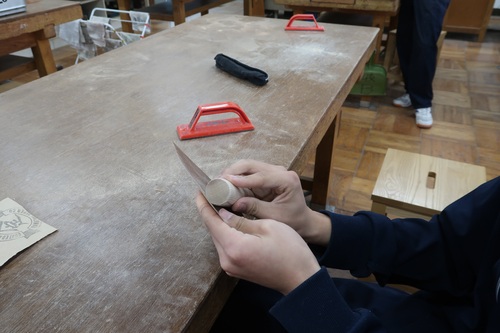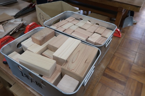 東京都森林・林業に関する事業(木育事業)として、「とうきょうの木」を授業で使い、積み木を作っています。