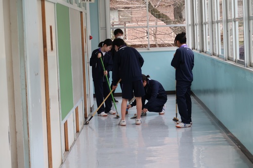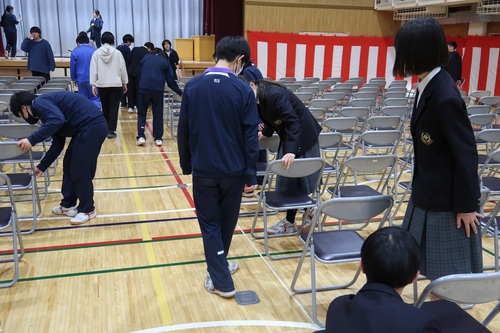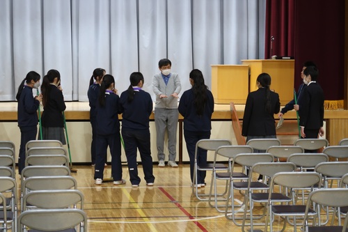 会場の関係で、在校生は卒業式に出席できませんが、教室や廊下の清掃、会場設営など、心を込めて準備しました。