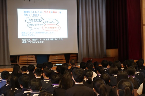 体育館に集まって、心のSOSの出し方を勉強しました。