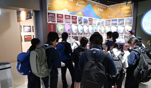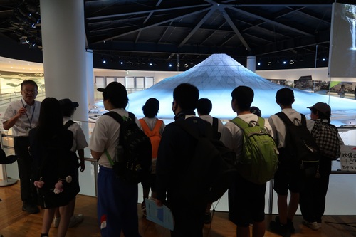 富士世界遺産センターでは、資料を見学したり、ガイドさんのお話を聞きながら、ワークシートにまとめ、富士山について学習しました。