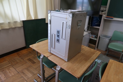 投票箱は、市の選挙管理委員会からいただいた本物です。古くなって使わなくなったものを払い下げてもらいました。
