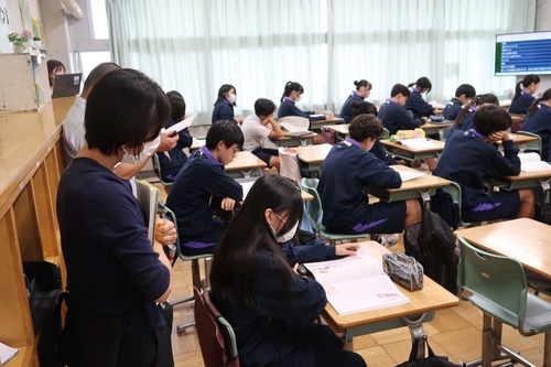 2学期は、授業改善に向けて全員の先生が研究授業を行います。今回は2年生で、先生たちが教材研究の会議を重ねて授業を行いました。