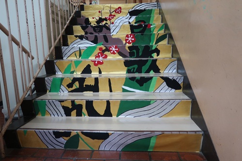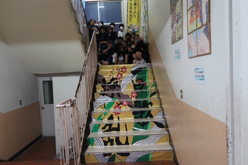 階段アートは素晴らしい出来栄えで、登校してきた生徒たちから驚きの声があがっていました。