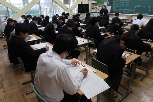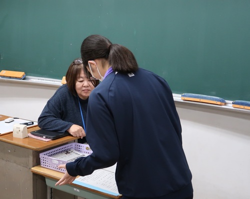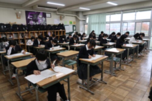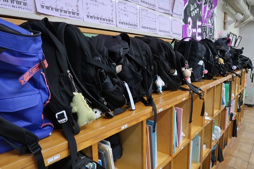 自分の荷物はロッカーの上や教室の前に置いて、机の周辺には何も置かないようにします。