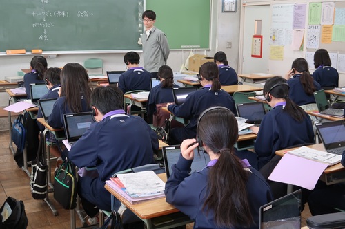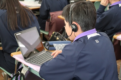 AIが発音をチェックして点数化してくれるので、生徒たちは高得点を得るために、何度も挑戦していました。