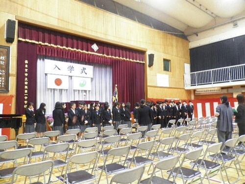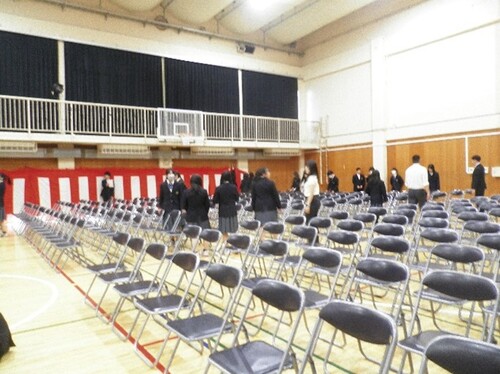 始業式の後、上級生が入学式の準備を行いました。2年前、入学した時の気持ちを思い出して、心を込めて準備をしました。