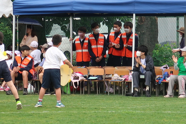 ボランティアの生徒たちは、小学生の見守りや、スタートの手伝い、グラウンド整備などを手伝いました。