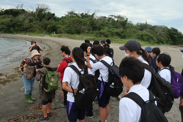 海岸では、海に入って波とたわむれる生徒も。