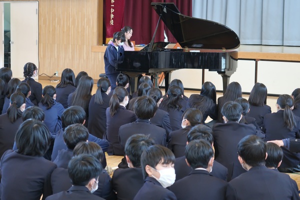 体育館ではダンスやピアノの連弾がありました。会場いっぱいの生徒たちと一緒に盛り上がりました。