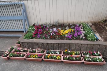 こちらは先日植えた正門付近の花