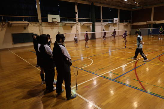 - バドミントンの基礎練習・ゲームなど。顧問の指示をきき、きまりを守り、休まず参加できる人