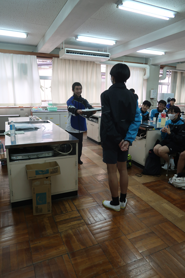 スコアシートの付け方 審判の仕方について2年生が1年生に説明