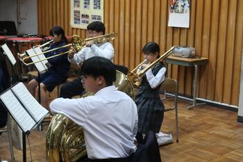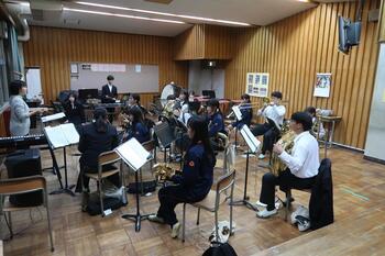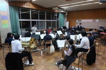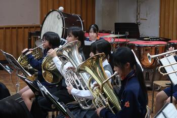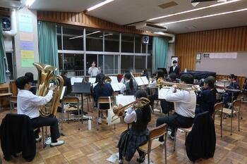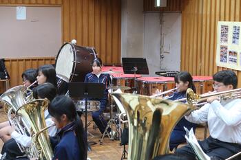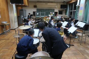 感染状況も落ち着き、楽器の練習は少しやりやすくなりました。それでも感染防止に努めなが3年生のいなくなった1,2年生の新しい仲間と部活動を行っています。現在はクリスマスコンサートを計画しており、保護者等の少人数に絞って実施ができればと……部員も頑張っています。