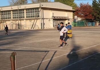 11月近く…夕方の校庭は寒いですが、寒さに負けずに練習