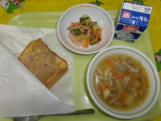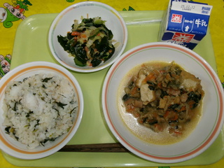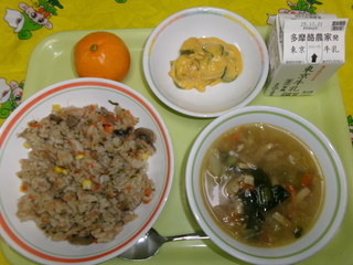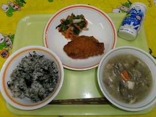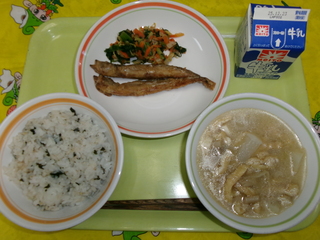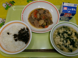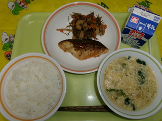*切り昆布の炒め煮 *かきたま汁 *牛乳
