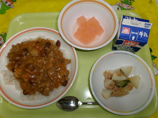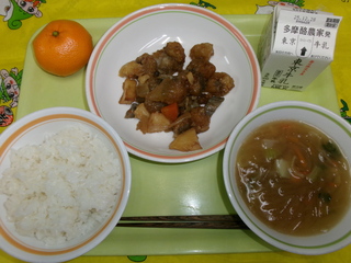 ★今日で二学期の給食は最後になります。早朝6時から給食を作ってくださっている調理員の方々・給食配送員さん・配膳員さん・給食当番・・・多く方々の協力により日々給食をいただくことが出来ています。感謝していただきましょう。 いよいよ冬休みに入ります、色々と楽しい行事が続き生活のリズム・食事・睡眠が乱れがちになります。健康管理には十分注意し楽しい冬休みにしましょう。