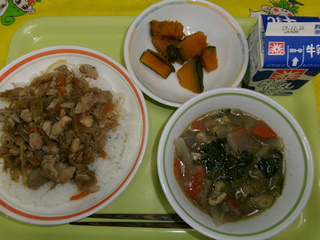 *ご飯 *ひじきのふりかけ *豚肉のうま煮