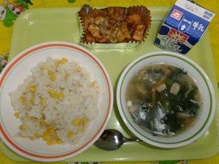 ★「全国学校給食週間」・・・今日の給食は昭和30年頃から40年代ごろに、特に人気だった給食献立になっています。「くじらの竜田揚げ」は当時の子供たちにとってとても重要な「タンパク源」とし給食でも人気メニューの一つでした。しかし、現代では中々食べることのできない貴重な食材となっています。今週は昔を振り返った給食ニューになっています。残さずにいただきましょう。