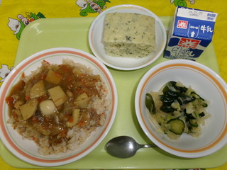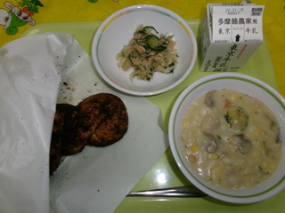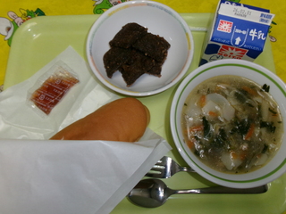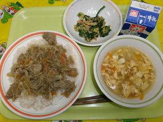 ★今日の給食では、東京でとれる食材を使用したメニューになっています。「牛乳」は都内の牧場でとれた牛乳です。また、和え物や味噌汁に使用している人参・小松菜・大根・豆腐は市内農家さんや市内のお豆腐屋さんのものを使用しています。 今日で「全国学校給食週間」の給食メニューは終わりますが・・・毎日安全に美味しい給食を食べていることを当たり前と思わずに、感謝していただくことを心がけたいですね。