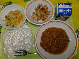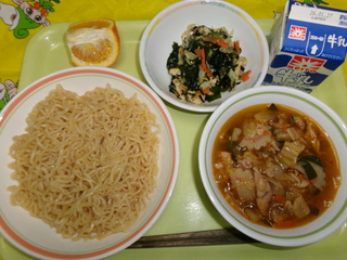 ★「全国学校給食週間」・・・ソフト麺、昭和38年に初めて給食に登場し昭和50年代まで多く食されていました。特に、ソフト麺を使用した「ミートソース」が人気メニューとして給食に出ていました。現在では使用食材も増え給食開始時期とは比べ物にはならないほど栄養価はもちろん タンパク質・ビタミン・鉄・カルシウムなどのバランスの良い栄養満点な給食になっています。