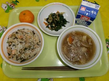 ★わかめ・・・食物繊維やミネラルを豊富に含みとても優れた食品です。「フコイダン」と云う栄養成分により細胞を活性化させ免疫力の向上効果・がん予防効果が期待されています。また、三大栄養素の代謝を高め 太りにくい体つくりに役立ち、肥満予防や美肌の維持にも効果がある万能食品です。 免疫力を向上させ風邪や様々なウイルスの予防のためにも 残さずにいただきたいですね。