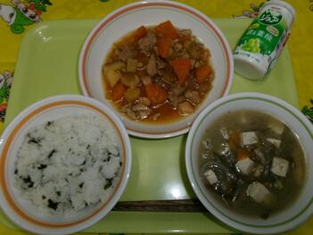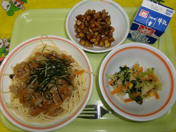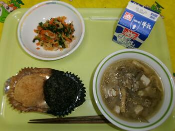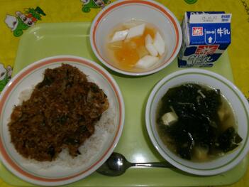 ★お萩・・・明日「秋分の日」は彼岸の中日です。春分の日の意味が「自然をたたえ生き物を慈しむ」 秋分の日の意味が「先祖を敬い亡くなった人を偲ぶ」と云われています。 昔から先祖崇拝や農作物の豊作に感謝してきた日本の文化です。 それにちなんで今日の給食では「お萩」です。同じものでも春のお彼岸には「ぼたもち」と云います。