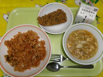 ★パプリカ・・・ビタミンが豊富な野菜です。1個に80mgのビタミンCが含まれています。ビタミンCにはメラニン色素を分解する働きがあります。真夏の紫外線ほど強くはありませんが、まだまだ強く体内に蓄積されて行きます。紫外線対策予防にもぜひ摂りたい食品ですね。 また、カロテンも多く含まれるため免疫力向上効果も期待できる食品です。 明日からはいよいよ中間考査です、体調管理のためにも残さずにいただきましょう。