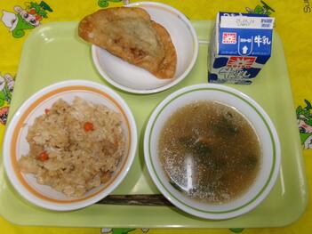 ★きなこ・・・大豆そのものを粉にしているので栄養が丸ごととれ消化にもよく 吸収率も上がります。良質のタンパク質を含み ビタミンB1・B2カリウム・鉄とミネラルも多く含みまた、食物繊維を多く含む栄養満点食材です。まさに「畑の肉」です。 きなこ揚げパンは、皆さんに喜んで食べてもらうため 40度以上の調理室で作業をしています。感謝していただきたいですね。