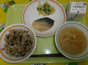 *ご飯 *秋刀魚の筒煮 *菊花和え