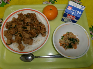 *麻婆高野豆腐丼 *切り干し大根とツナのサラダ