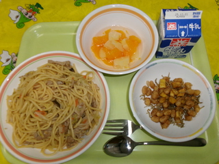 *キャベツの和風スパゲティ*大豆とじゃこの甘辛揚げ