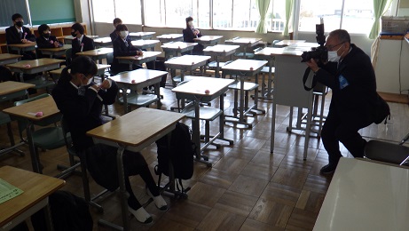 中学校の教室での緊張の様子を写真屋さんが撮影