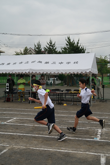 学年ごとの実施となった今年度の運動会、最初に行うのは1年生です。中学に入って初めてクラスという団体で取り組む行事として種目こそ少ないですが、気持ちはひとつにしてしっかりやり遂げる1年生の姿がありました。