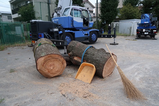 東門付近の枯れ木も伐採 業者がクレーン車を使って行ってくれました。