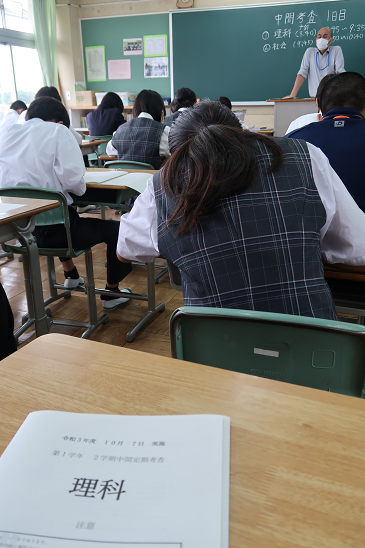 生徒たちは初日は理科と社会のみということで2つの教科に集中して取り組んでいました。なお、この期間に体調不良などで受けられたかった生徒は10月11日月曜日を再試験日に当てています。