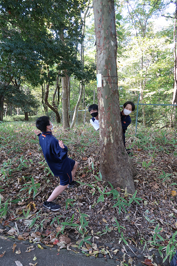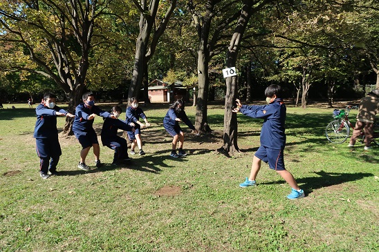 今まで大きな行事のなかった1年生ですが、やっと校外学習を実施することができました。とにかく歩くことを中心に小金井公園まで徒歩で往復、そして公園内の江戸東京たてもの園と小金井公園内のウォーキングラリーを行いました。秋晴れの晴天に恵まれた一日となり、普段の授業ではできない班での協力しての行動やちょっとした自由時間の遊びを満喫しました。