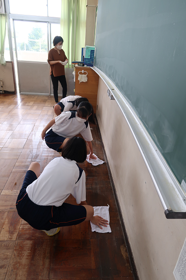 教室清掃の仕上げはワックスがけ 2年生