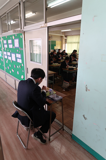 3年生はこの日で給食は最後の喫食となりました。小学校から考えると9年間の給食の最後の日となりました。普段何気なくいただいていましたが、今日は味わって食べていた3年生でした。