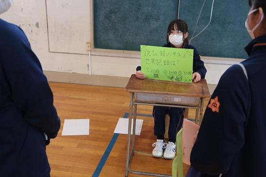 1時間目から4時間目まで1年生は自分たちで考えたクイズラリーを楽しみました。スキー教室には行けませんでしたが、実行委員の学級委員がよく頑張ってみんなを楽しませてくれました。班やクラスの団結も高まったようです。