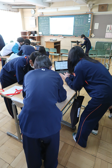 1年生の学級委員が中心となってスキー移動教室の代わりのイベントを企画しました。ほとんど全ての内容を生徒たちが考え、今日の運営も行ってくれました。この日は3年生も卒業し、2年生は校外学習に出かけているということで、1年生のみが学校にいるので自由に教室や体育館を使いながら行いました。