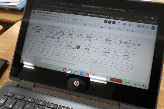 「東京×〇〇」という探究テーマで東京を探る学習として2年生は校外学習を計画しています。見学地をどこに設定して、交通経路は…時間配分は…費用は…昼食場所は…タブレットや様々な道具を駆使して計画を立てています。