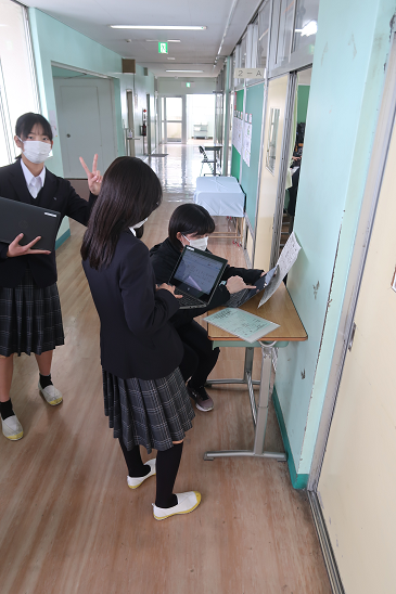 実際に行く班ごとに調べ学習 タブレットの導入でとても効率的になりました。