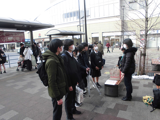早朝に雪が降った寒い日でしたが、2年生が計画していた「東京都内巡り」の校外学習に行ってきました。スローガンは、「one team〜都内巡りダヨ!全員成長!〜」で東京と班で考えたテーマを探求していく「東京×〇〇」を学習テーマとして各班で見学をしました。必ずチェックを受ける場所として東京駅(来年の修学旅行を見込んで)、そして浅草文化観光センターです。そのほかの所は、お昼ご飯の場所を含めて自分たちで考えて行動しました。