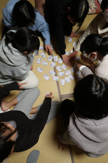 社会の先生が都道府県の特色を読み上げてあっている都道府県の札を取ります。