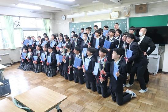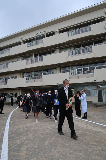 生徒たちは笑顔で巣立っていきました。今年は式中に合唱もすることができ、卒業式本来の良さが出た感動の式にすることができました。保護者の皆様にはお忙しい中、ご臨席をいただき感謝いたします。卒業生の前途を心より祝福いたします。