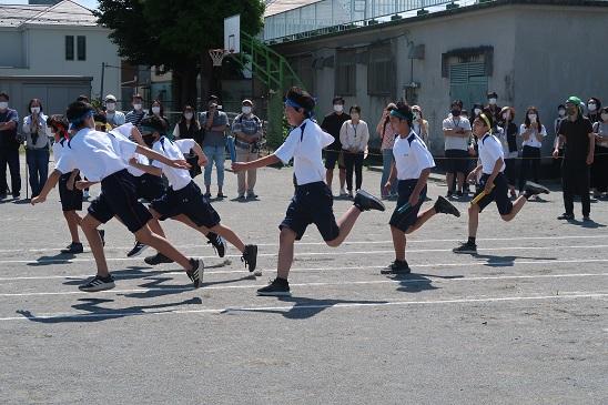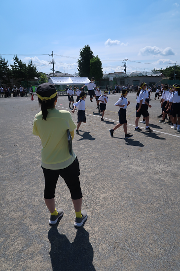 晴天の運動会日和の中、学年別開催の最初は、1年生です。感染防止を優先したため二中では学年別として競技も絞って実施しました。