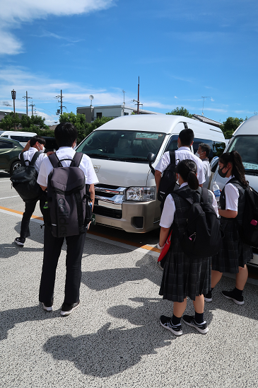 3日間の修学旅行も最終日。この日はタクシーによる班行動となります。タクシーの運転手さんに事前に行きたい場所を一番から伝えており、この中から運転手さんと相談しながら効率よく半日の見学を行います。タクシー利用ということで比較的遠い場所も見学したり、運転手さんの案内や説明もあり最終日を満喫している生徒たちの姿がありました。