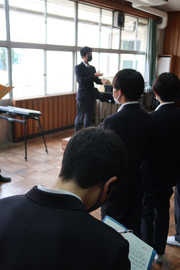 入試関係もひと段落している3年生、3月6日の合唱コンクールに向けてクラスで調整しています。3年間感染防止のために実施されなかった合唱コンクールなので、3年間で初めての挑戦になります。例年(2年前)までの3年生であればこれまでの積み重ねから、取り組みもスムーズにいきますが、ことしはそうもいかないこともあります。しかし、そこは3年生、持ち前のパワーで団結して歌い上げるように取り組んでいます。