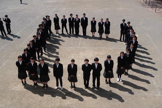 2年生の時も年度の初めに行ったクラス全員での人文字づくりを行いました。その場で相談して30分以内につくるという課題…人文字にクラス全員の思いを込めてつくり上げます。昨年度の経験を生かしてどんな仕上がりになったのでしょうか…
